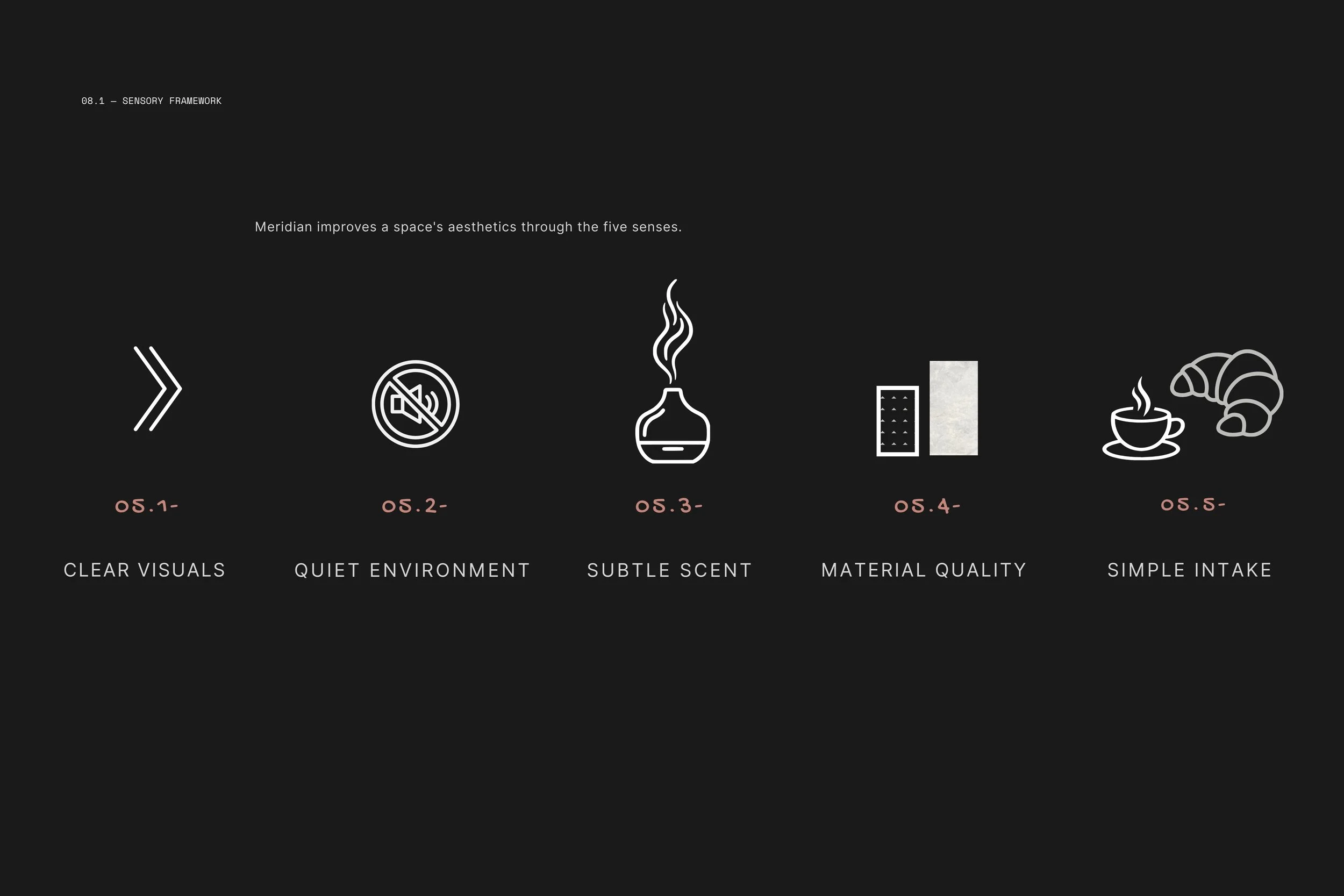Meridian is a private members club designed around clarity, movement, and a sensory design philosophy.